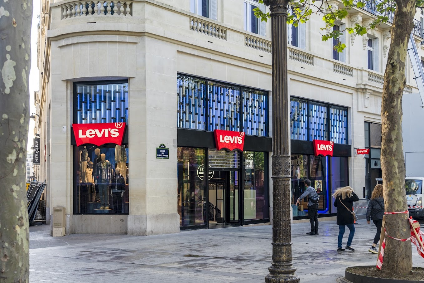 Levi's : La marque s’est offert son tout nouveau temple du denim, au numéro 44. Son mythique 501 y trône en majesté. Pour se rapprocher davantage de sa communauté, Levi’s a également misé sur de nouveaux services, avec une zone dédiée à la personnalisation et à la réparation, baptisée Tailor Shop.