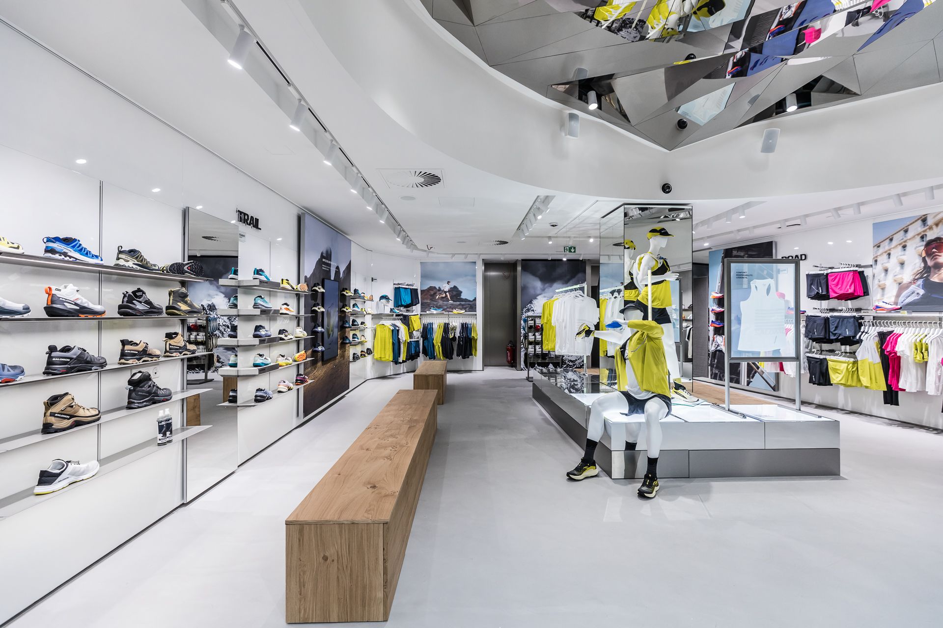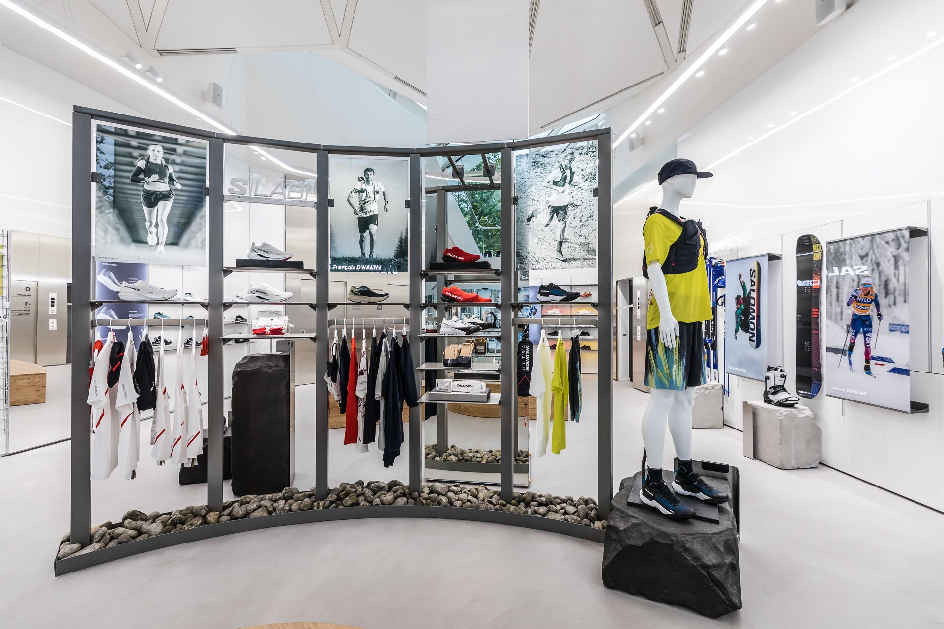 Salomon : la première marque de sport de montagne est voisine de Levi’s. Son magasin a été conçu pour permettre aux visiteurs de découvrir toute l’étendue de son offre : chaussures, vêtements et équipements haut de gamme pour la course à pied, la randonnée et les sports d’hiver.