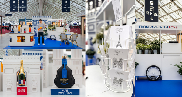 Direction le terminal 2F de l’aéroport Paris Charles-de-Gaulle où le Groupe ELBA a installé une boutique éphémère estivale pour Moët-Hennessy. Cette expérience originale, imaginée avec du mobilier de réemploi et des œuvres d’art en papier qui représentent les grandes monuments de la capitale française, offre aux passagers la possibilité de se détendre sur une terrasse à la parisienne, tout en découvrant les offres exclusives de travel retail de Moët & Chandon, Veuve Clicquot et Hennessy. Une dernière carte postale à écrire avant de prendre son vol ? Un ultime souvenir à acheter ? Vous êtes au bon endroit.